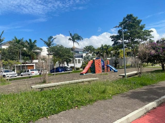 localiza-se em condomínio residencial de classe média alta, de alto padrão, exclusivamente de casas; Condomínio Quintas Del Lago, com acesso controlado por cancela e guarita 24hs, em área arborizada, defronte praça interna, em terreno plano com construção de cerca de 10 anos, que ocupa a maior parte do terreno.